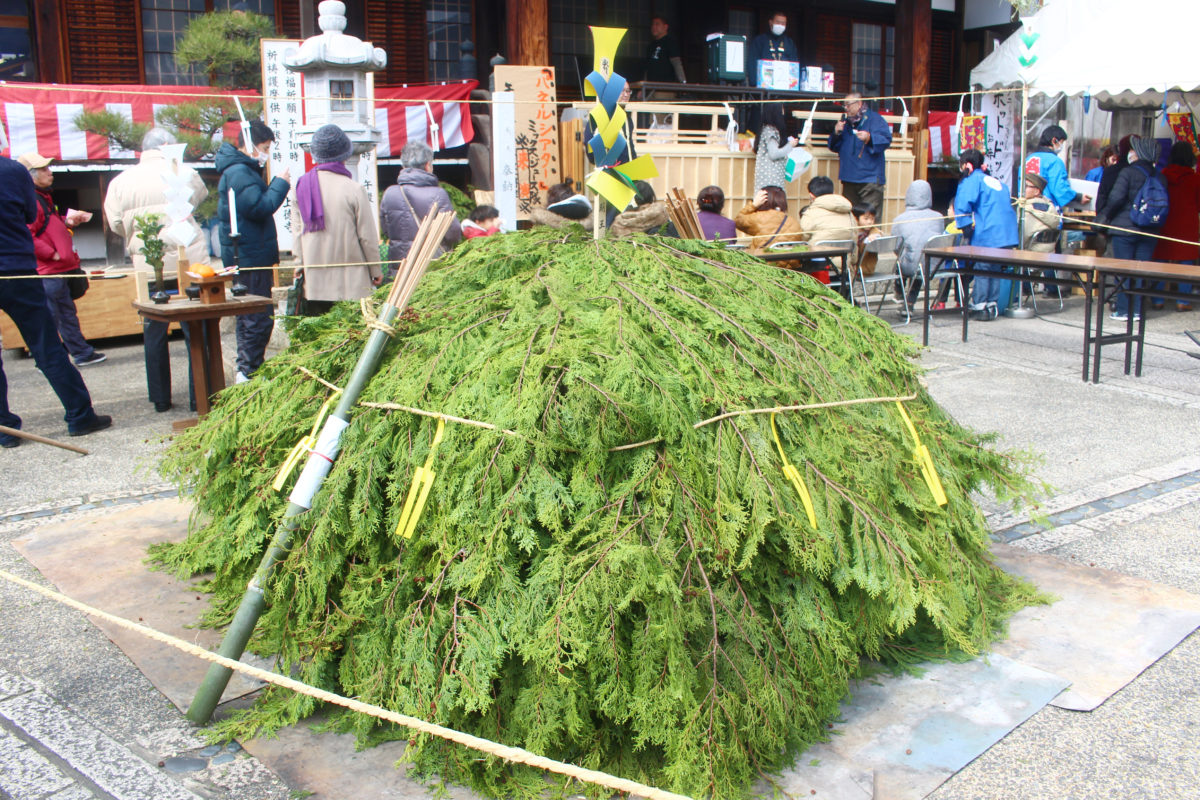 境内の中央には杉の葉が詰まれ、その周りを結界で囲んでいます!こちらで後ほどお焚き上げが行われるとのこと!
