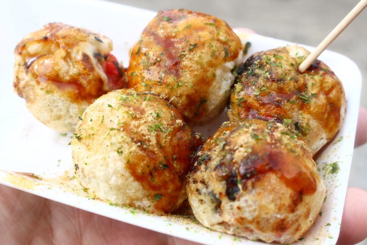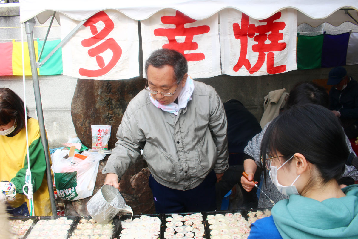 世継地蔵尊大祭の日は、なんと境内で無料のご接待を受けられちゃいます!こちらは多幸焼と称したたこ焼きを、次から次へと焼いて振舞っています!