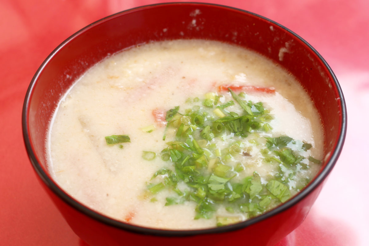 お次は粕汁のお接待!まだまだ寒い2月のお祭りだけに、酒粕の入ったこのお椀はしみます!