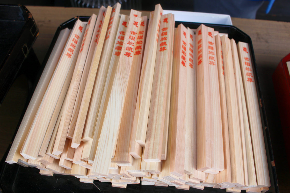そんな縁起のいい日はお地蔵さんにお祈りするのと共に、護摩供養してみるのはいかがですか?境内で販売されているこちらの護摩木に祈りを込めながら名前を書いてお納めすることで、お祭りに合わせてお焚き上げしてもらうことができます。