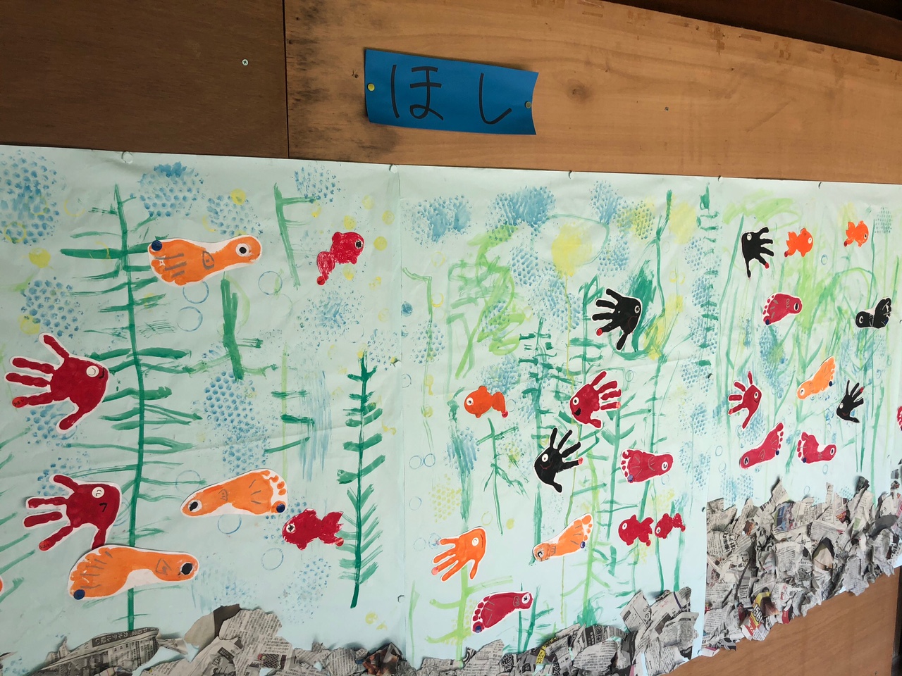 本殿奥では近隣の福田幼稚園の子供たちによる金魚の貼り絵も展示されていて、子供たちが自分の金魚を探して、写真を撮っていました。楽しい思い出になるひと時ですね。