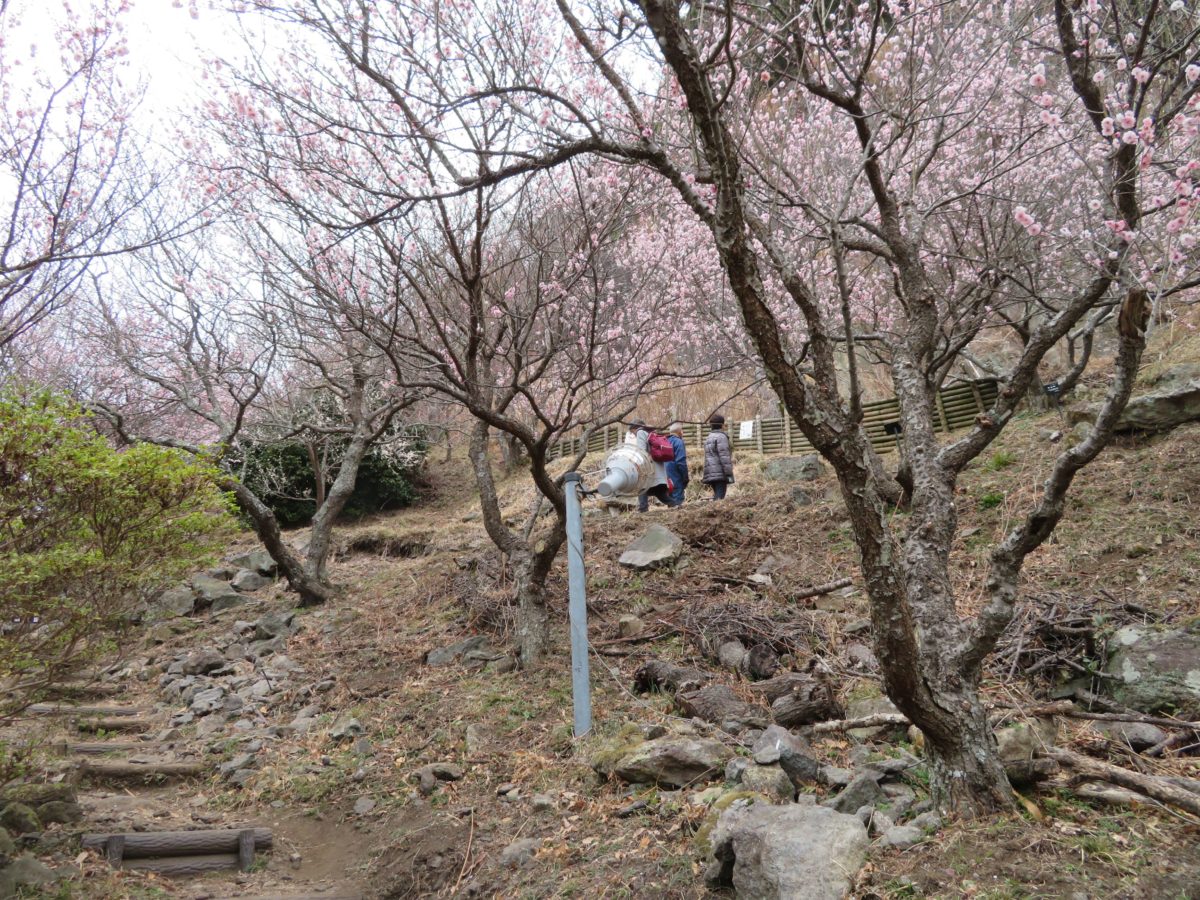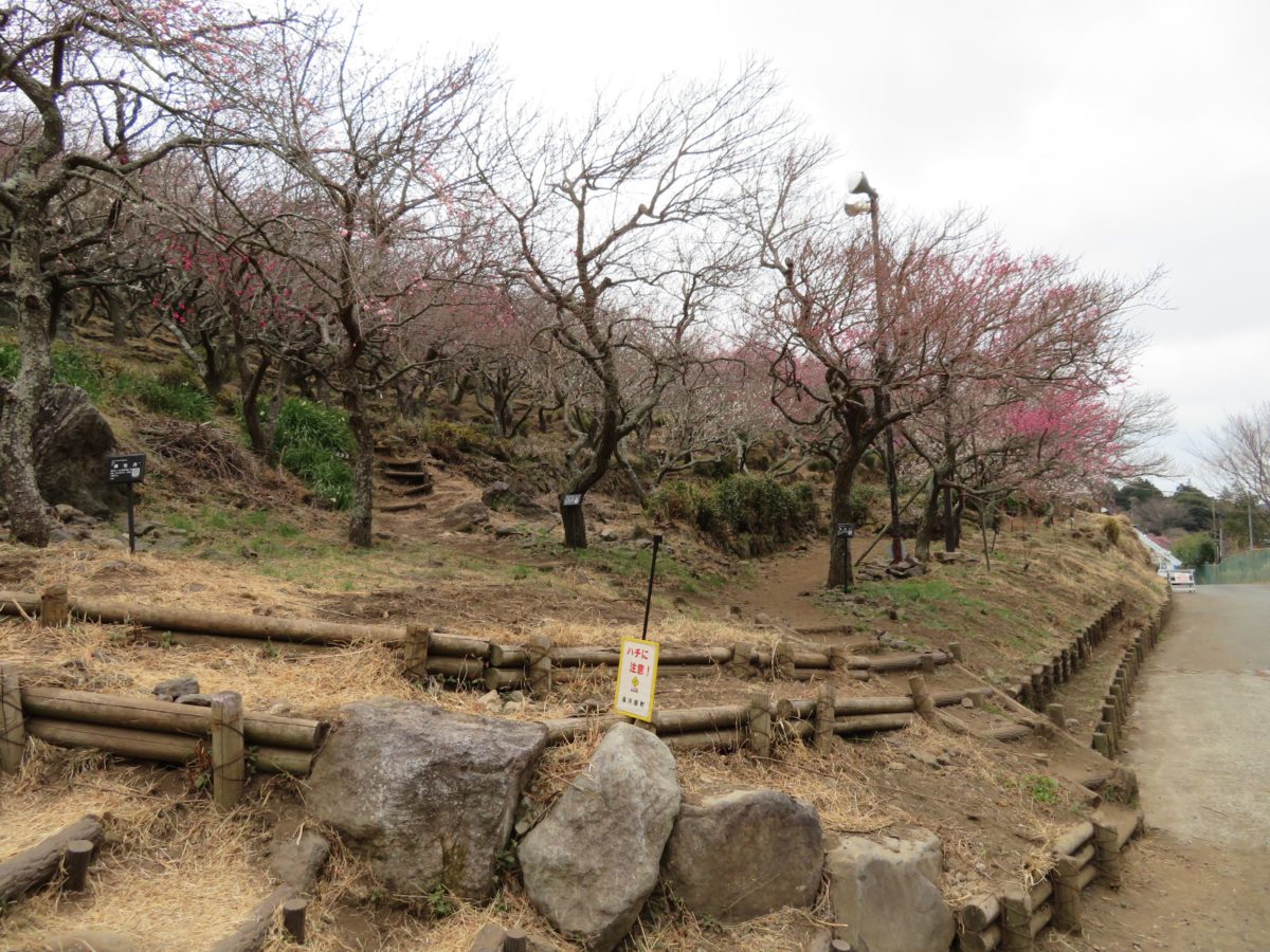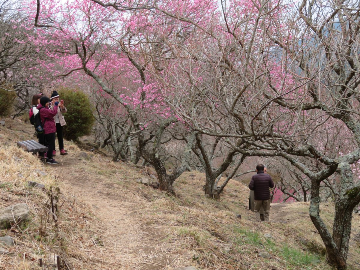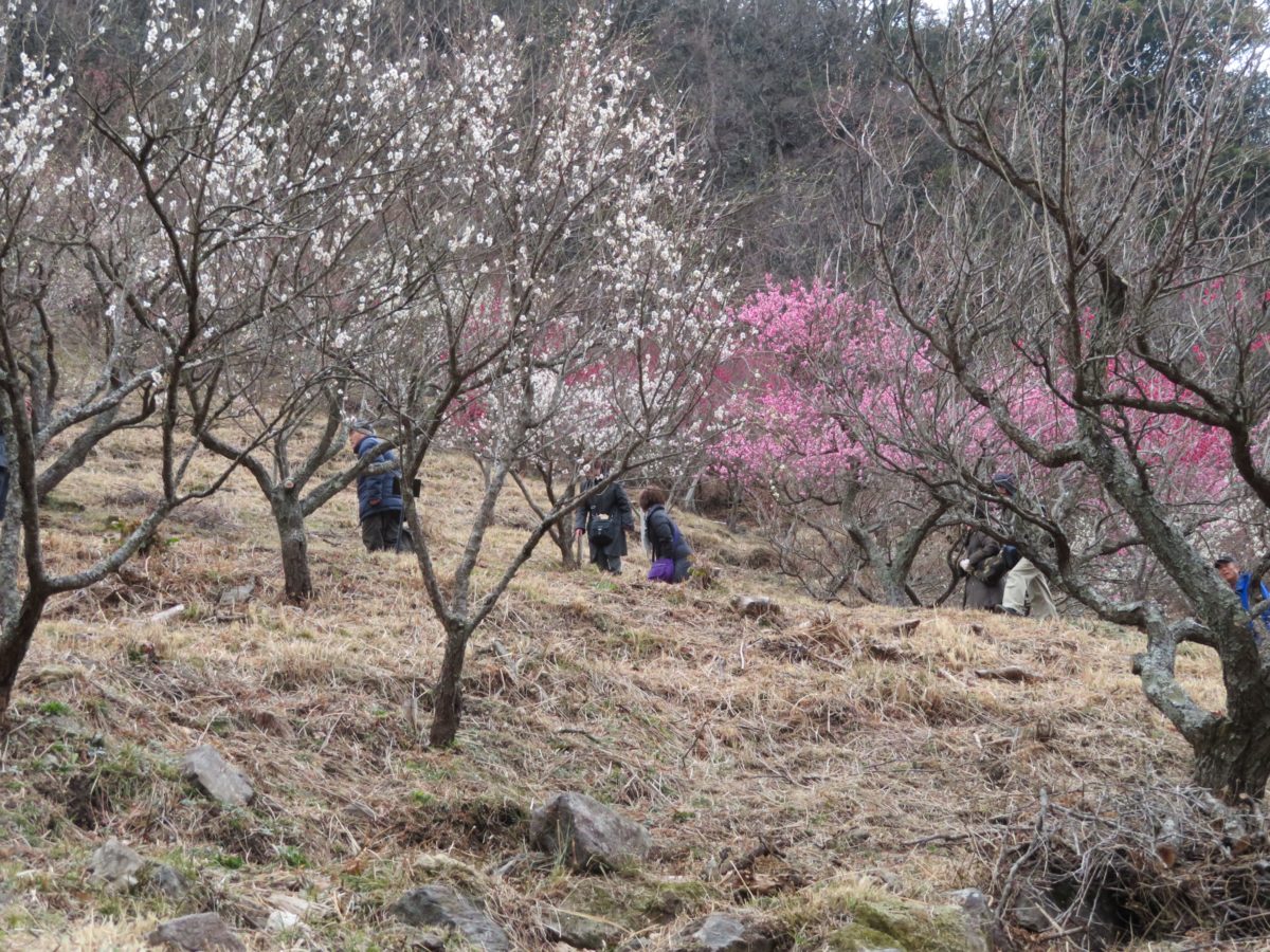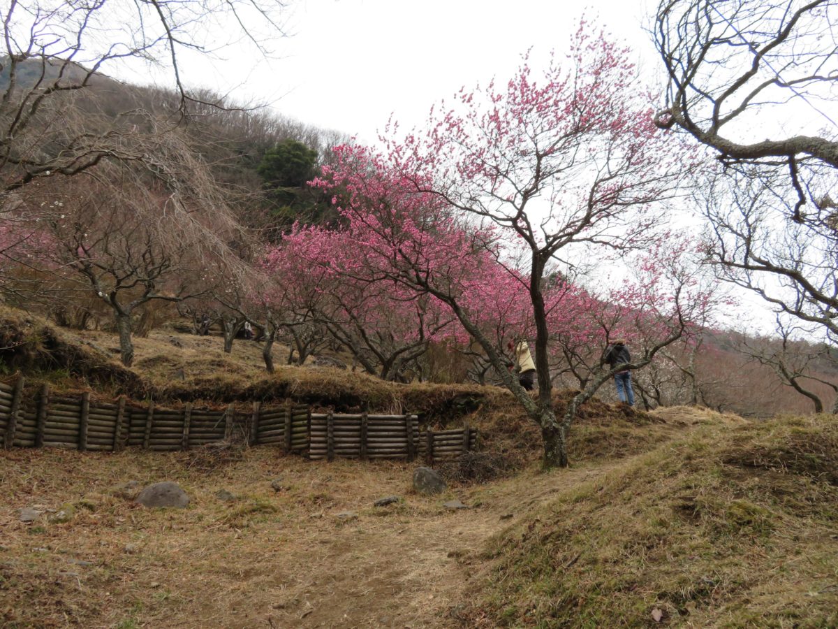 幕山の斜面に整備された遊歩道の上下に咲き乱れる梅の花