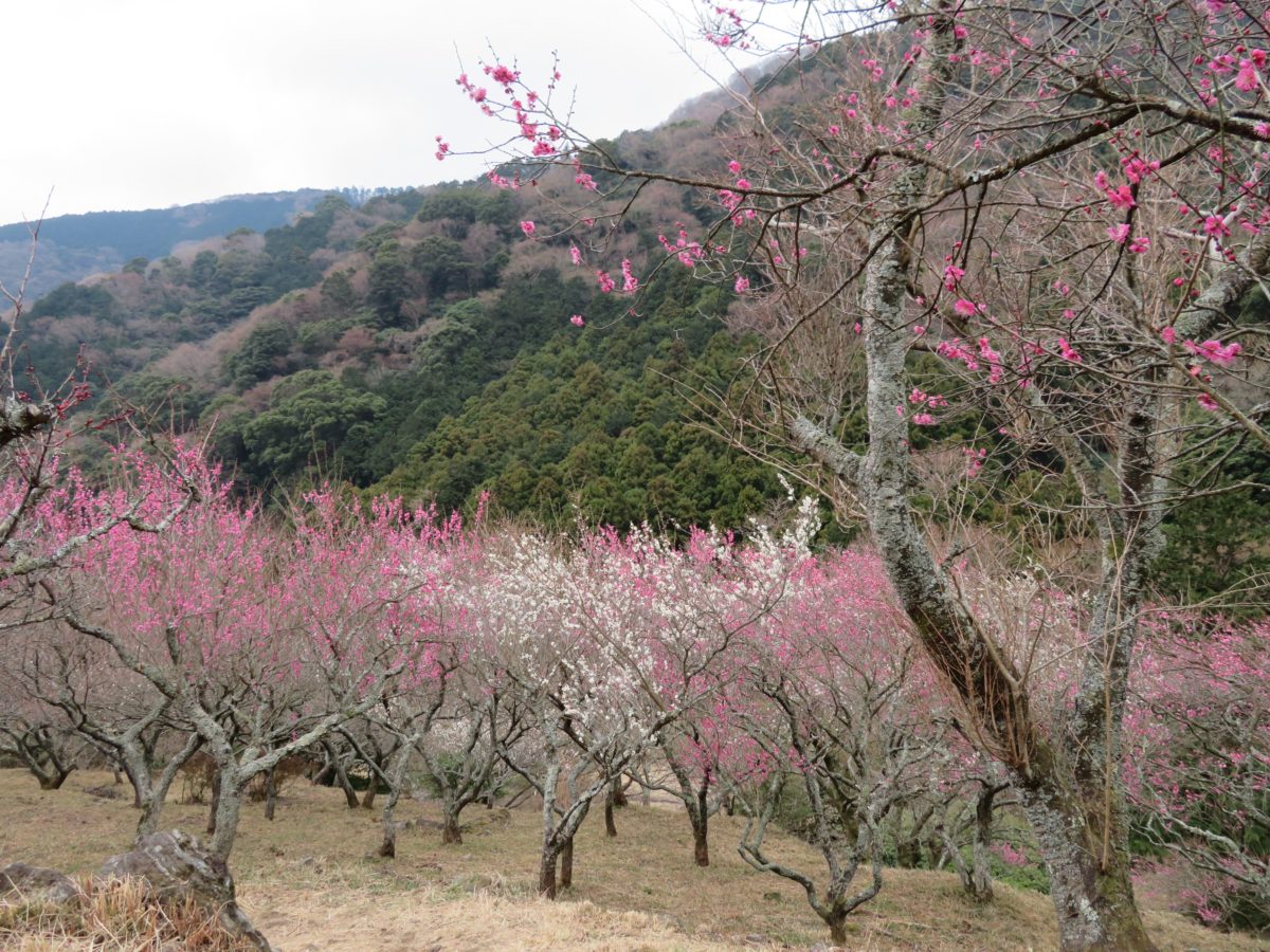 「湯河原梅林梅の宴」は、横浜から在来線で約1時間の湯河原の北部に聳える幕山の麓の幕山公園で、例年2月上旬から3月中旬に開催されています。山の斜面には約4,000本の梅が植樹され、幕山を季節の彩りで包みます。