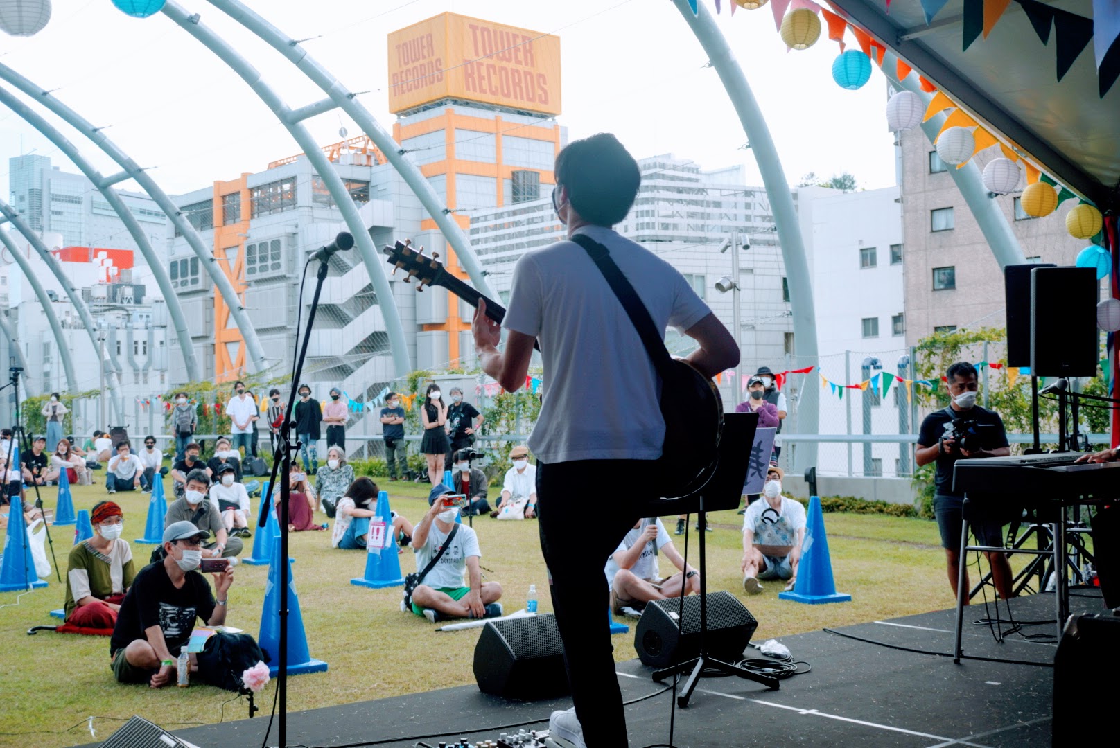 ステージ側から見た景色はこんな感じ。遠方にタワーレコードの看板が見える。まさにNo Music No Life!