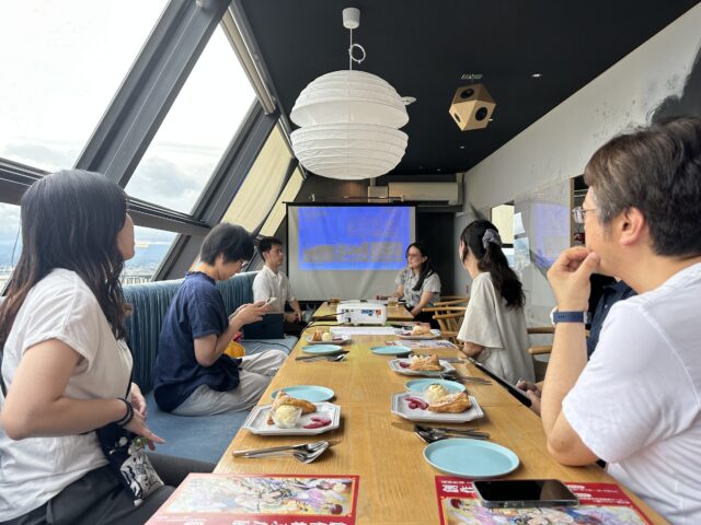 そして2025年に新たに導入したのが、祭りの始まる夕方までの時間を楽しんでいただくための「ねぶたの粋をたしなむ特別講」です。青森市街を一望できるラウンジでティータイムを楽しみながら、ねぶた有識者による講話を聴講。その後、普段は関係者しか入れない「ねぶた小屋」を少人数で特別見学しました。