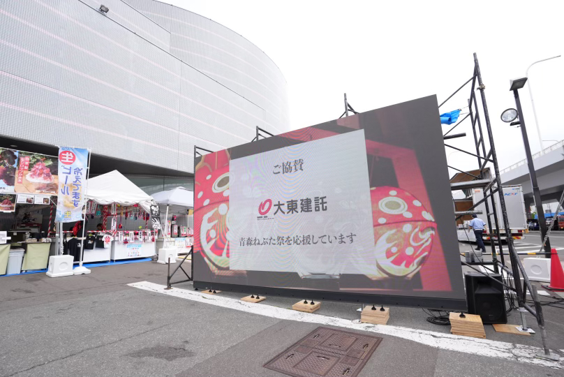 二つ目は大画面で印象に残る「LEDビジョン」です。こちらは、2024年に日本の祭りとして高い知名度を誇る「青森ねぶた祭」と「阿波おどり」で実施されました。「青森ねぶた祭」では、祭りの拠点となっている青森県観光物産館アスパムに設置された200インチの大型ビジョンで、「DK SELECT」のCM映像と応援メッセージが祭り期間中に上映されました。