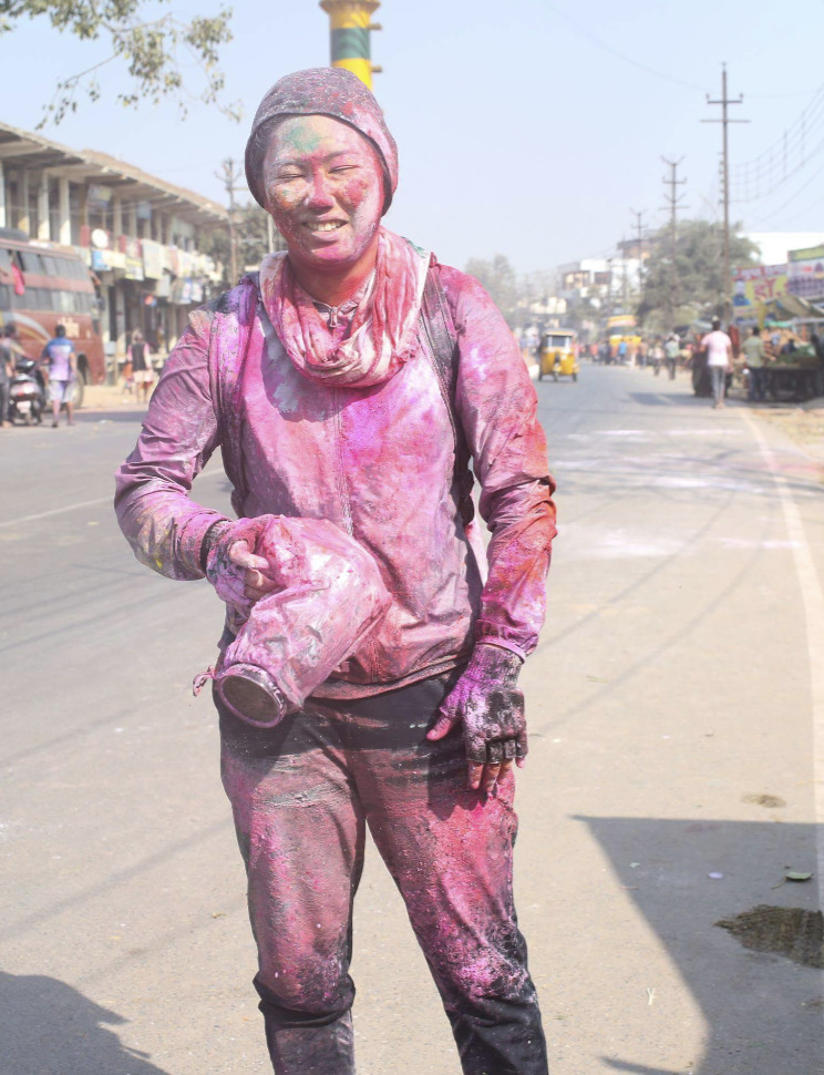 インドの祭り「Holi(ホーリー)」撮影中の南さん。カラフルな粉を投げ合う春祭り。