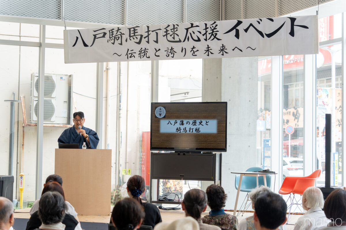 6月には公共施設「八戸ポータルミュージアムはっち」の広場を貸し切って、南部家主催の「八戸騎馬打毬応援イベント」を実施。南部さんの呼びかけで窮状を知った約120人の市民が、南部さんや関係者の話に耳を傾けました。