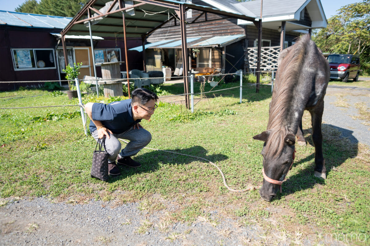 10月、南部さんと一緒に真っ先に向かったのは、八戸市豊崎町にある乗馬クラブ「POLOライディングクラブ」。オーナーで獣医の平野直さんが経営する牧場には、5頭の可愛らしい道産子たちが草をはむ姿がありました。