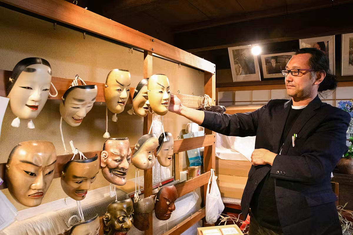 私自身は嵯峨大念仏狂言に、小学校6年生、12歳の時から携わっています。狂言を始めたきっかけは、幼い頃から能面や狂言面に興味を持っていたことです。3歳頃から面が好きで、地元の狂言が面をつける狂言だったことが縁で始めました。もし出会いが異なっていれば、面を作る側になっていたかもしれません。しかし、地元にいたことで、小学校の部活動として狂言を始める機会を得ました。