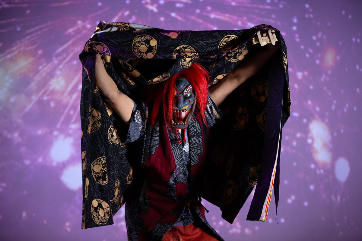 若者がちょっとずつ伝統芸能から離れていっているというところであるならば、今、どうやったらそれを近づけられるのかっていうのが、1つのテーマになります。短い時間がいいのかもしれないし、もしかしたら、お面の顔が今風だったり、題材が身近なものであれば伝わるのかもしれないというのもあって、5分間ぐらいの舞とかを創作する形で、創作表現として演じております。