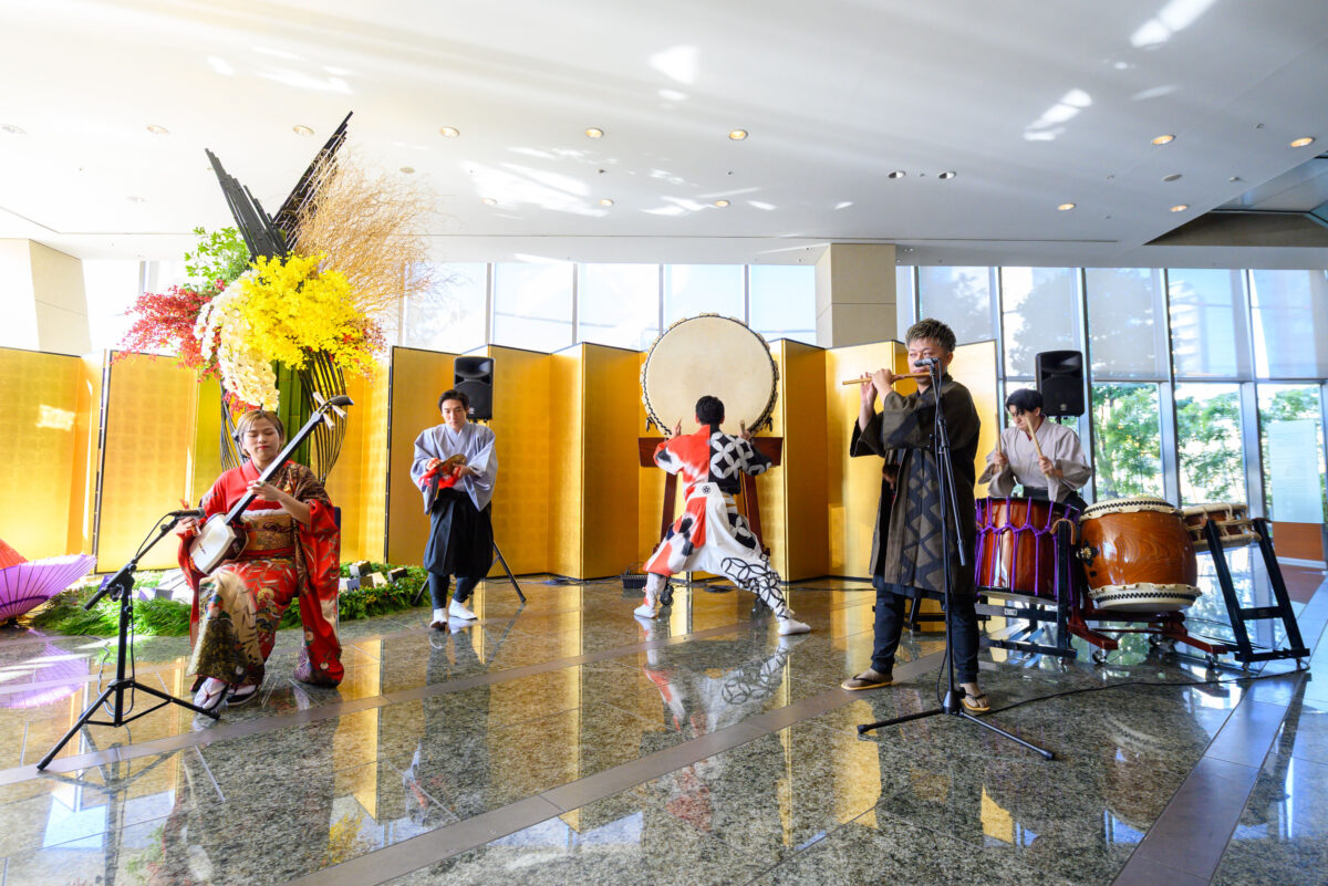 また、海外からお越しのゲストにとっても、和太鼓や篠笛、琴といった日本の伝統楽器の音色は印象的で、言語に頼らず日本文化を感じられると大好評。ホテルのラグジュアリーな空間と調和しながら、日本文化の魅力を伝える時間となりました。