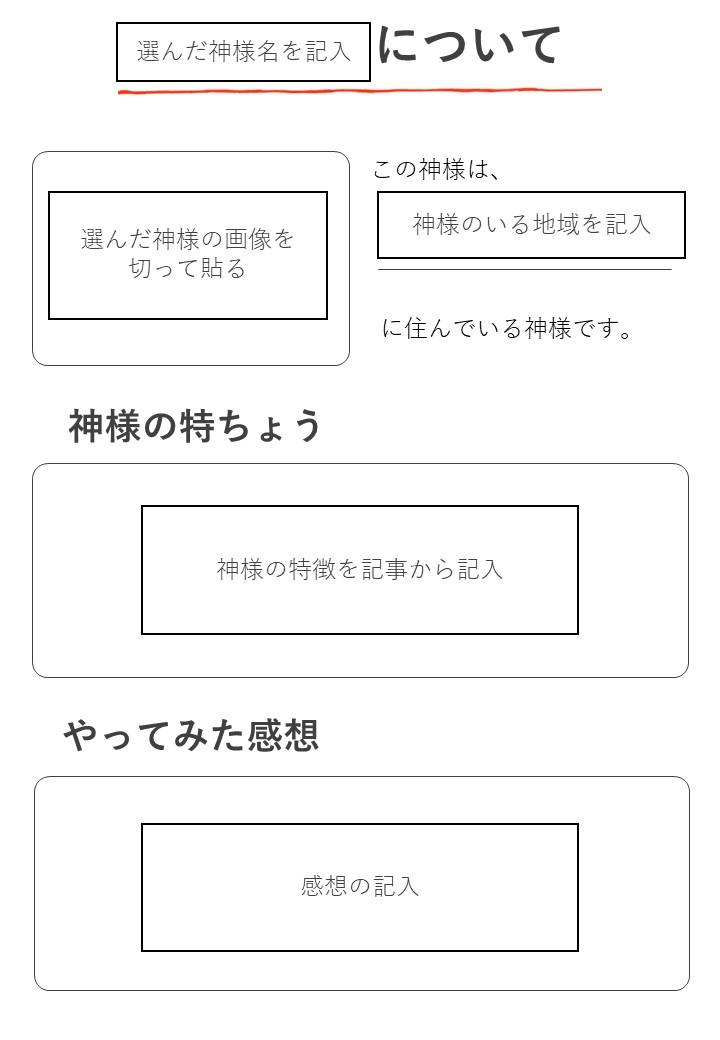 空欄のところに記入して、神さまについて紹介してくださいね!