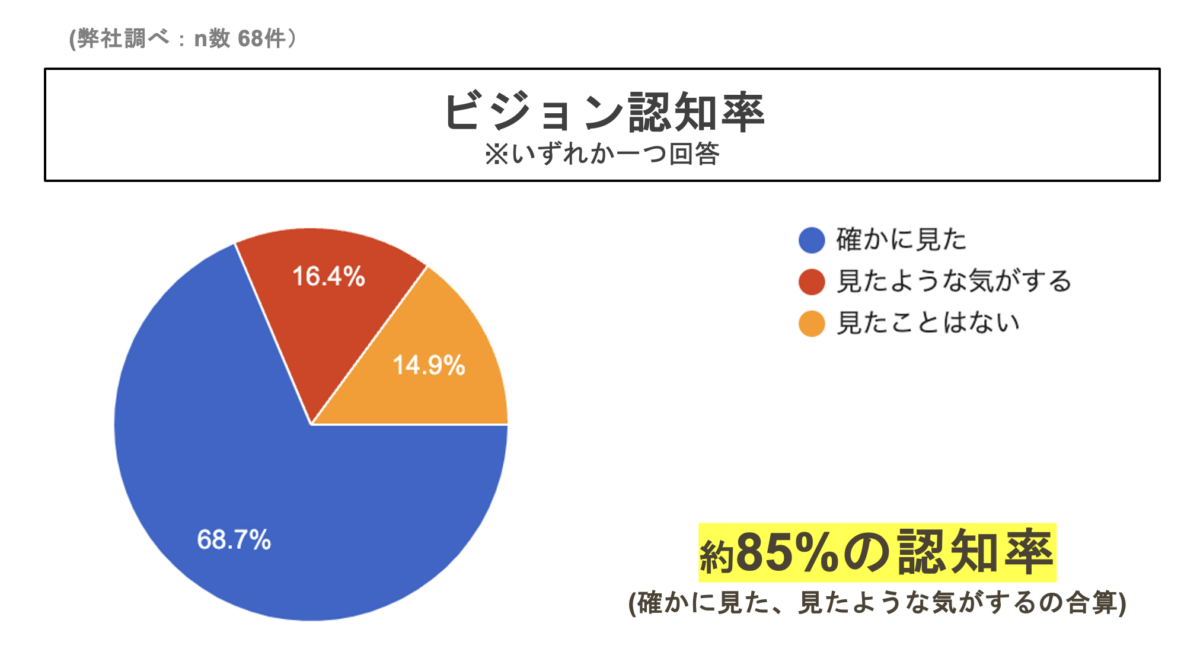 合わせて行った来場者アンケートによると、ビジョン自体の認知率は約85%。また、放映されていた広告動画の内容についても、約78%の方が認知と高い効果が見られました。