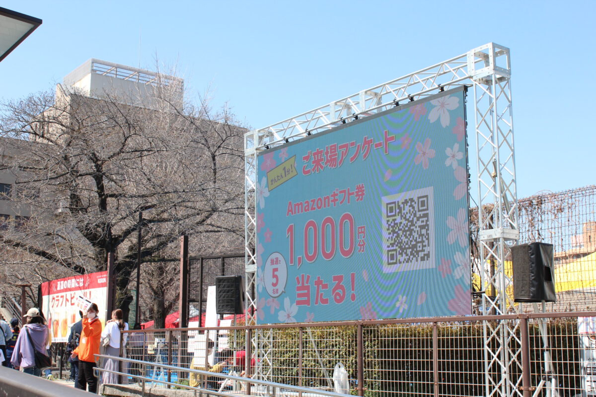 オマツリジャパンでは、LEDビジョンをローカルのお祭りでも活用する試みとして、2024年3月30日・31日に行われた「目黒川の桜まつり2024」の会場となった田道広場公園の一画にLEDビジョン(高さ2.5m×幅4.5m)を設置。会場案内図などとともに、祭りを支援したいと協賛いただいた企業様の動画CMを流す取り組みを行いました。