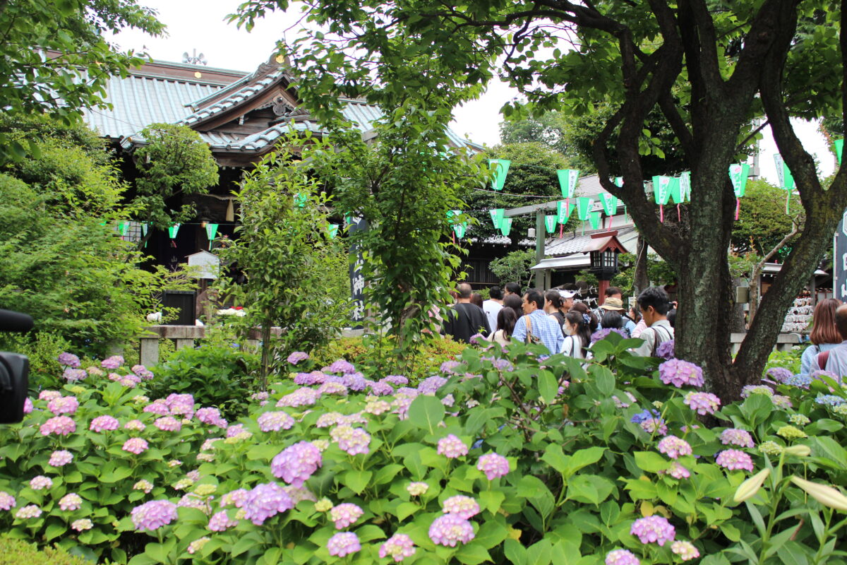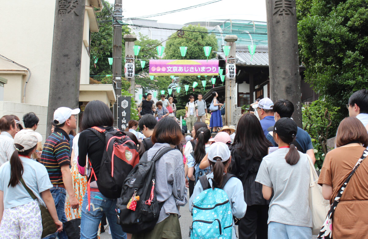 午前中は文京シビックセンターで、まつりの背景や広報の意義、取材・記事作成の基本を学ぶ座学を実施。その後、白山神社へ移動し、約3000株のあじさいや富士塚の公開、模擬店やステージイベント、来場者インタビューなど、まつりの空気を五感で取材しました。