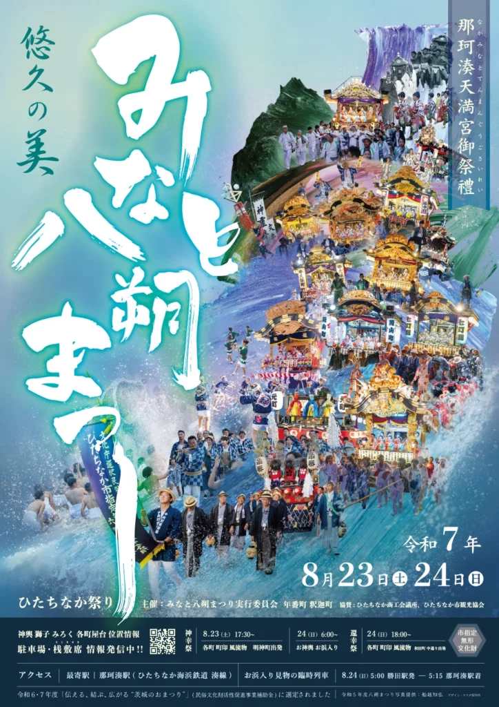 令和7年度「みなと八朔まつり」(ひたちなか市)ポスター。祭りの優美さに魅せられる。(https://www.3710839.com/より)