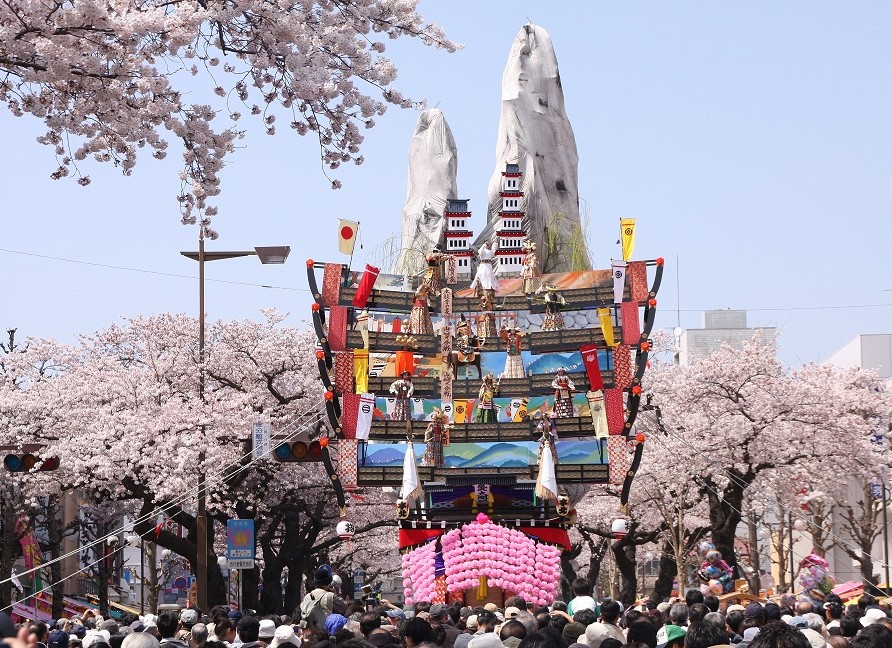 「日立さくらまつり」(日立市)。山車に人形が載った「日立風流物」で人形芝居が行われる。(写真:日立市提供)