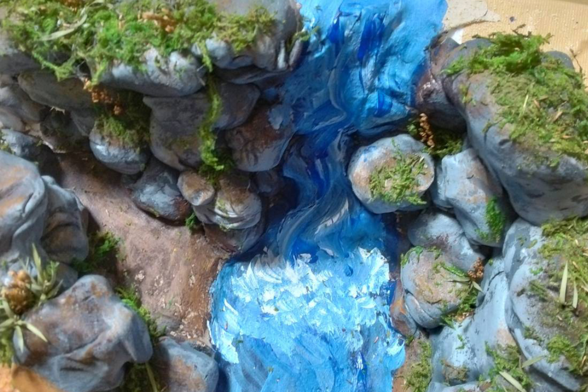 スズキ:原典には一部挿絵もあるんですが、背景なども詳しく描かれていないので、わからないところだらけなんです。なるべく原典に忠実にしたいという思いがあったので、実際に新潟へ何度も行って現地の冬を体験したり、熊の手のディティールを調べるために動物園のクマを何時間も見続けたり。話の舞台となった谷の滝壺は、ジオラマを作って確認しながら構図を決めました。当時の道具や着物など民俗については、記念館の学芸員さんから大変丁寧にアドバイスをいただきました。