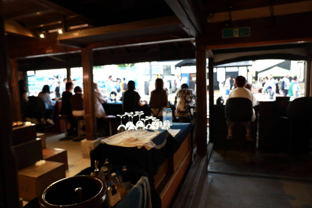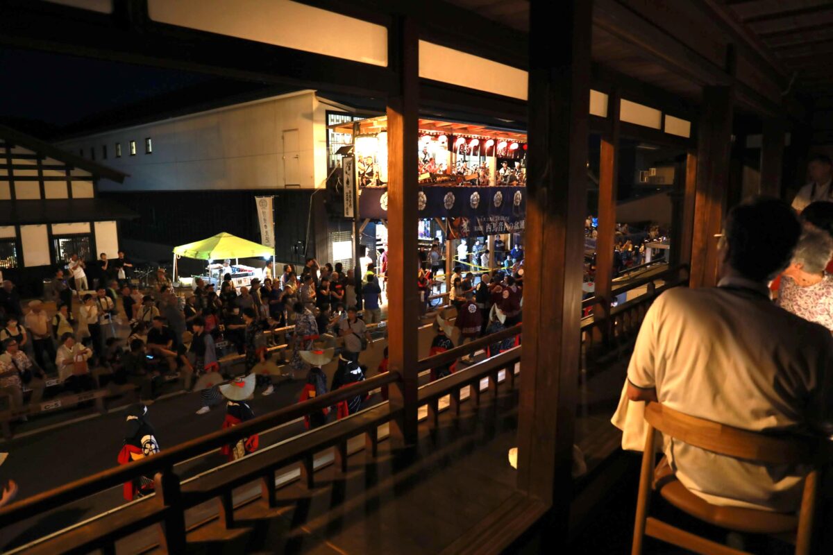 今回、この母屋を特設観覧会場として活用し、2階メゾネットスイートをVIP観覧席、1階をプラチナ席として設定。来場者は祭り会場の中心、本町通り囃子櫓前という絶好の立地から、踊りの臨場感を間近で体験しました。