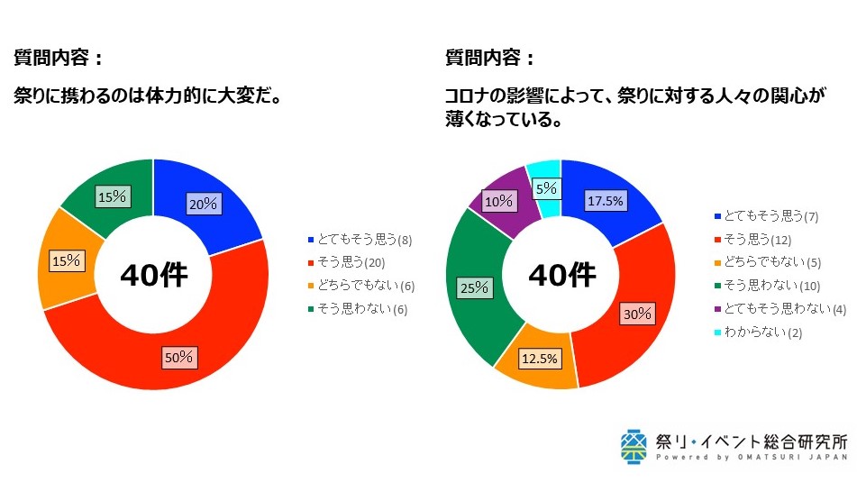 また、回答者の半数近く(47.5%)が「コロナの影響で祭りへの人々の関心が薄くなっている」と回答したことから、祭りの存続への危機感を募らせていることが見えてきました。