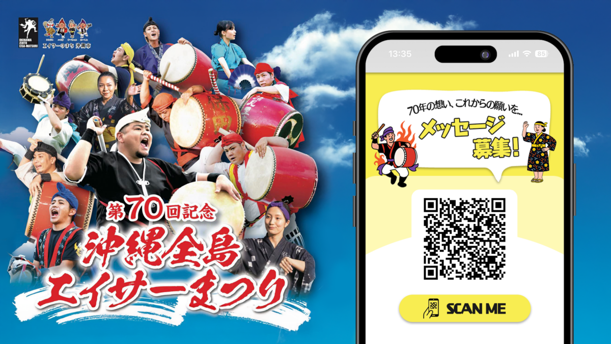 第70回記念沖縄全島エイサーまつりではさらに、来場者がスマートフォンから応援メッセージを送れるデジタルサービス「Chipee(チッピー)」を導入しました。