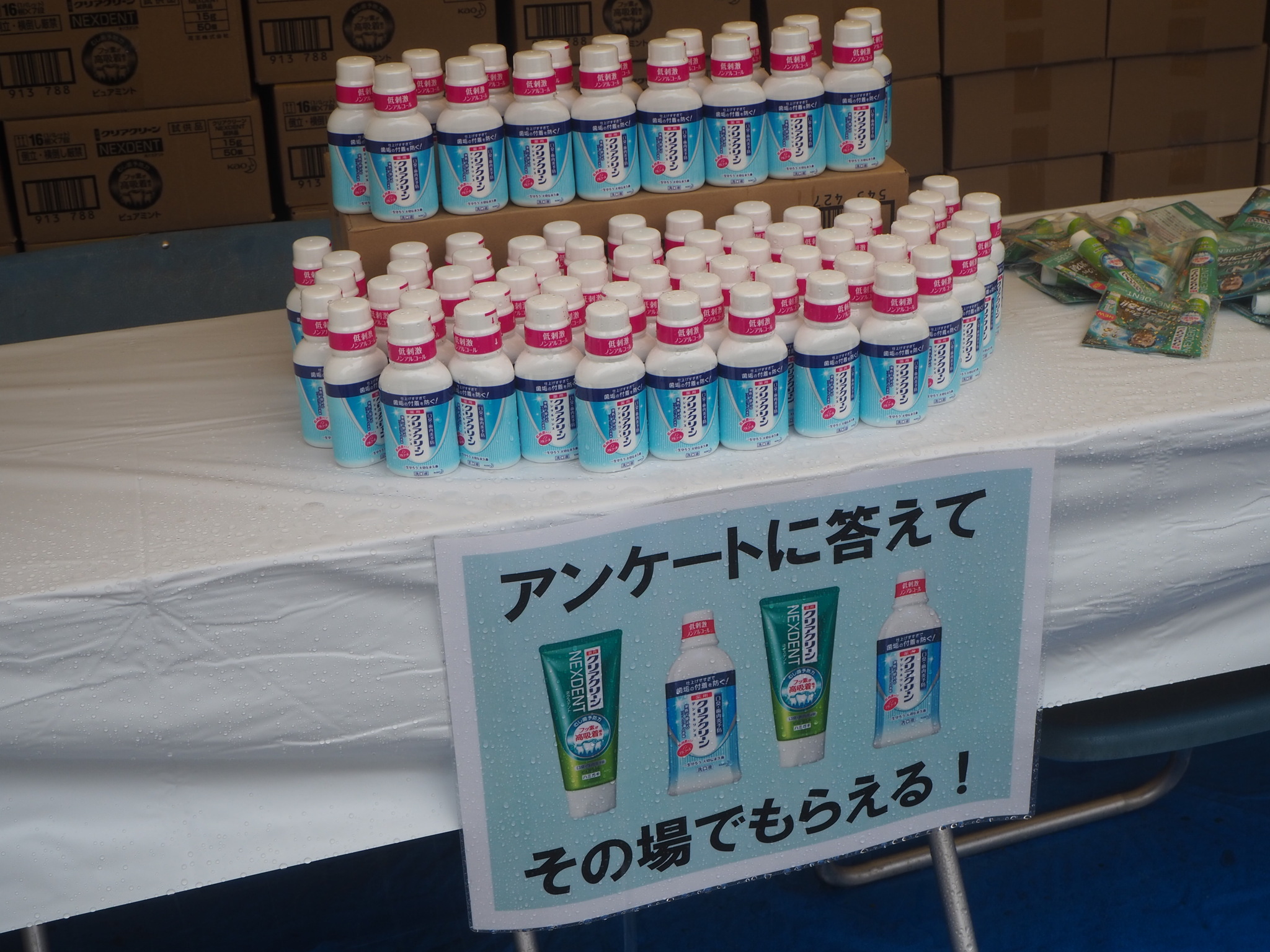 ご当地鍋を楽しんだ後は、お口を清潔に保っていただこう!ということで、来場者の方に歯磨き粉と洗口液を配布。また、サンプリング実施と合わせて商品に関する簡単なアンケートに答えていただき、商品をただ配布するだけでなくアンケート結果を今後の商品開発やマーケティングに活用出来るよう、サンプリングを行いました。