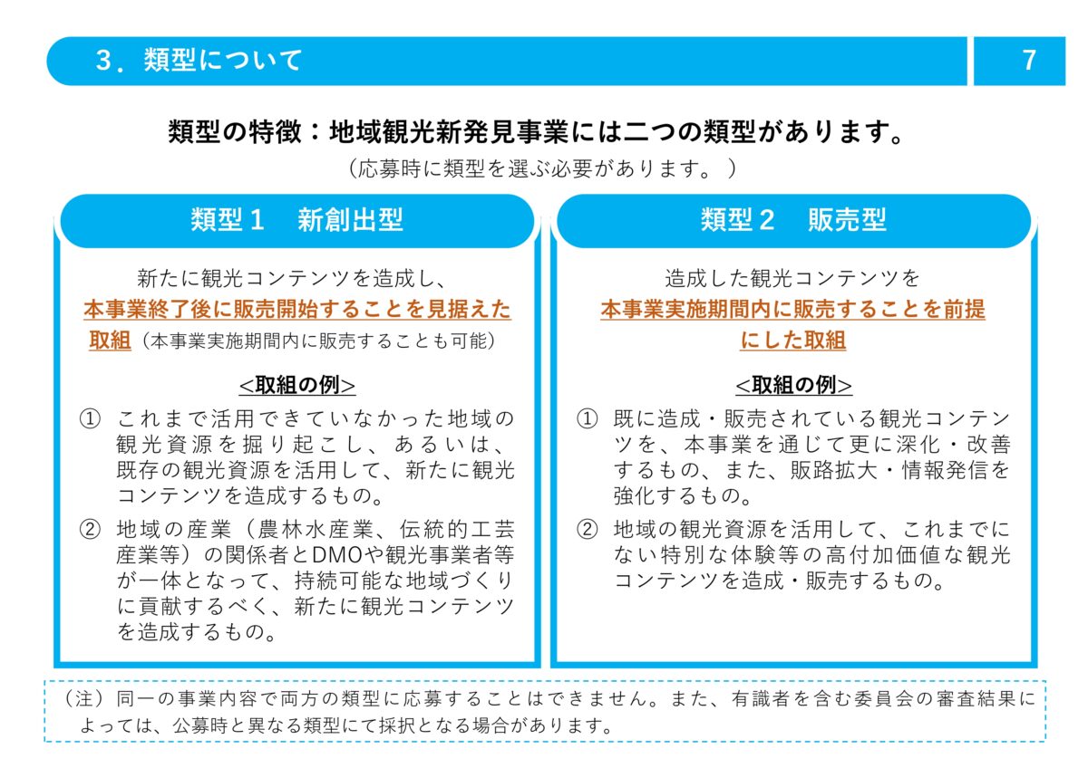 「地域観光”新発見”事業」には2つの類型が設定されています。