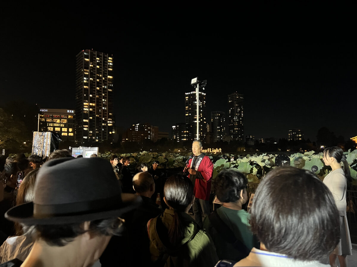 「Peace of Light」は、2025年11月1日・2日の19時30分から、不忍池蓮見デッキ前で約15分間行われました。上野で初めての夜間ドローンショーということもあり、地域の期待値は高く、どのように安全に、気持ちよく鑑賞していただくかが重要なポイントでした。