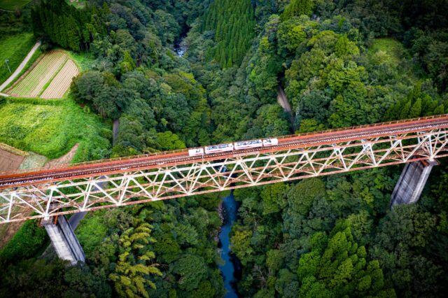渓谷から見上げる高千穂町の景色も絶景ですが、高いところから眺める高千穂町の景色も絶景! そんな素敵な景色をじっくり味わうことができるのが「あまてらす鉄道」です。