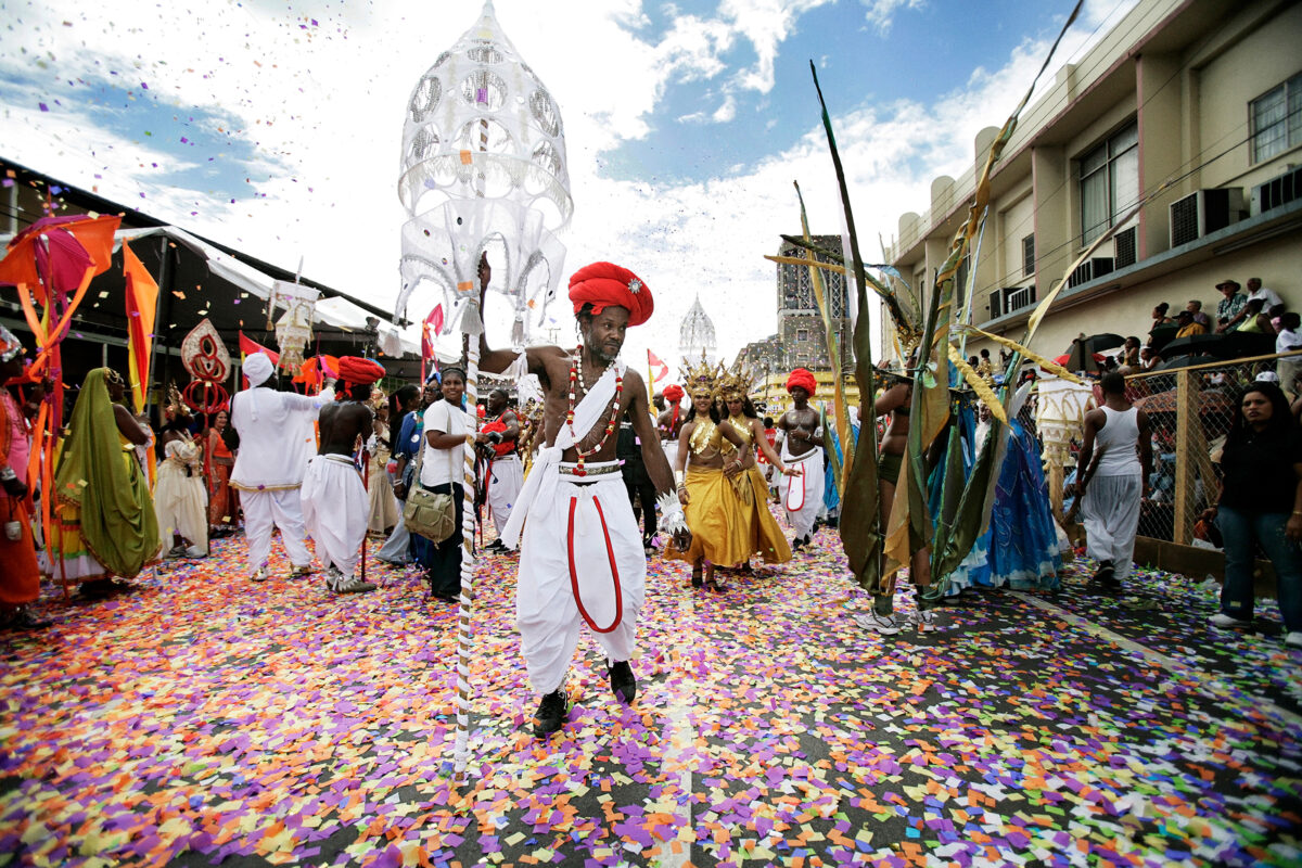 南 カーニバルが一番盛り上がるのは4日間。大勢の参加者が音楽に合わせて街を練り歩くというパレードだけはなくて、色のついた粉を投げ合ったり、音楽イベントがあったりと、日替わりで色々行われます。カーニバルはそもそもキリスト教の謝肉祭に合わせて行われる宗教行事ではあるのですが、カリブ地域の歴史背景もあって、アフリカやインド、ヨーロッパの祝祭の要素も入り混じっています。そうした異文化を受け入れて自分たちの祭りにしてきたために、オープンマインドな参加型のカーニバルなんですよね。そして、とことんポジティブになるためにカーニバルをやっている印象を受けました。