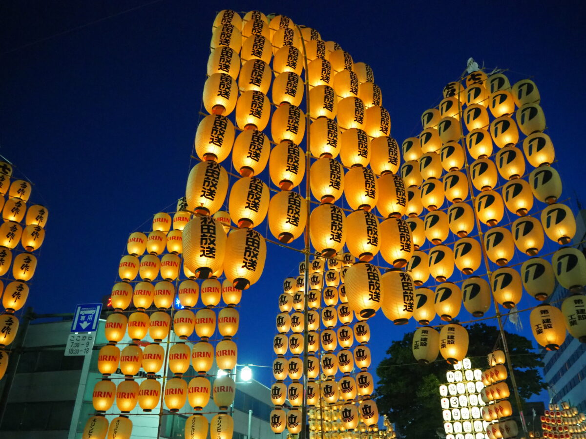 「秋田竿燈(かんとう)まつり」は、「青森ねぶた祭」「仙台七夕まつり」と並ぶ「東北三大祭り」の1つ。200本以上の竿灯が大通りを練り歩く幻想的で圧巻の光景を見ようと、2017年には130万人以上の来場者が訪れた全国的にも有名なお祭りです。