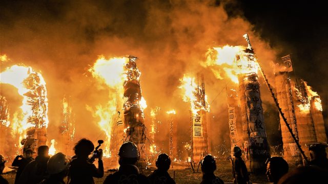 高さ10m重さ3トン巨大松明が30本!もはや大火事のようなダイナミックファイヤー系奇祭!福島県で420年続く歴史ある日本三大火祭りのひとつ!