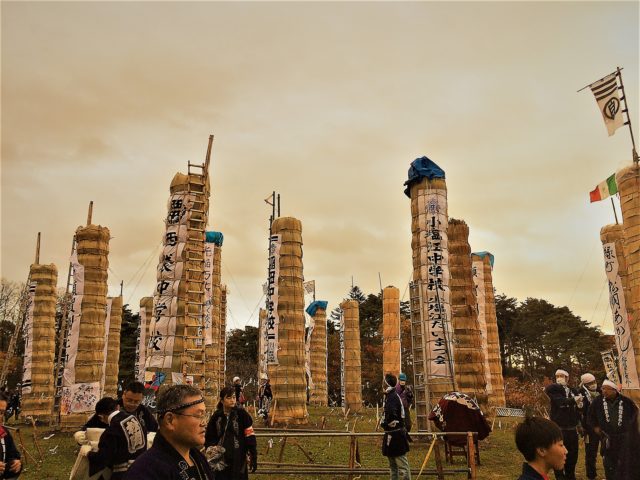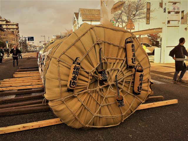 どうやら大松明はまだ寝かせた状態。これから運ぶようです。