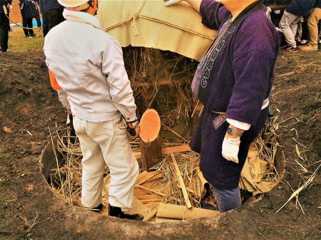 わらがギッシリ詰まっていて、なるほど、これはよく燃えそう。