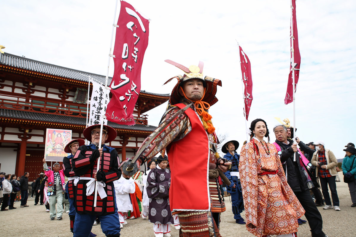 正式名称は「儺追神事」(なおいしんじ)。寺ではなく神社で行う「裸祭り」。祈祷と神籖によって選ばれた一人の儺負人(神男)を巡り、8000人の裸男たちが肉弾相打つアツい揉み合いを展開しますが、これは、神男に触れると厄落としができるという信仰があるからです。祭りの起源は767年、称徳天皇が悪疫退散の祈祷を全国の国分寺に命じたことがキッカケという、古き伝統ある奇祭です。