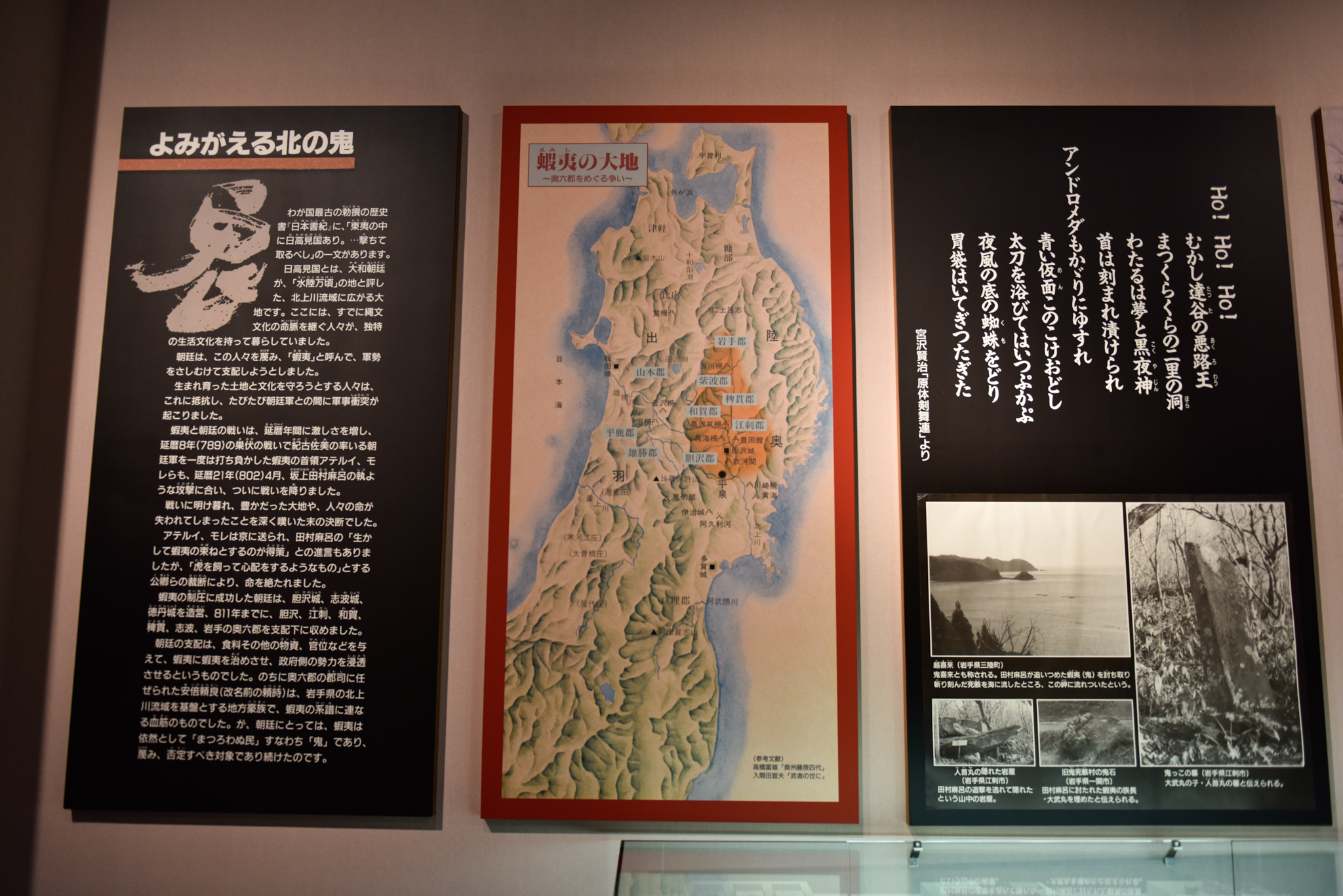 さあ、展示も終盤。日本や世界の鬼たちにたくさん驚かされてから、足元を見るとどんな鬼の世界が見えてくるのだろう。地元の北上市の鬼についても紹介されている。鬼が出現する背景から、朝廷と蝦夷と攻防の流れといった歴史的背景の知識まで詳しく知ることができるようになっている。