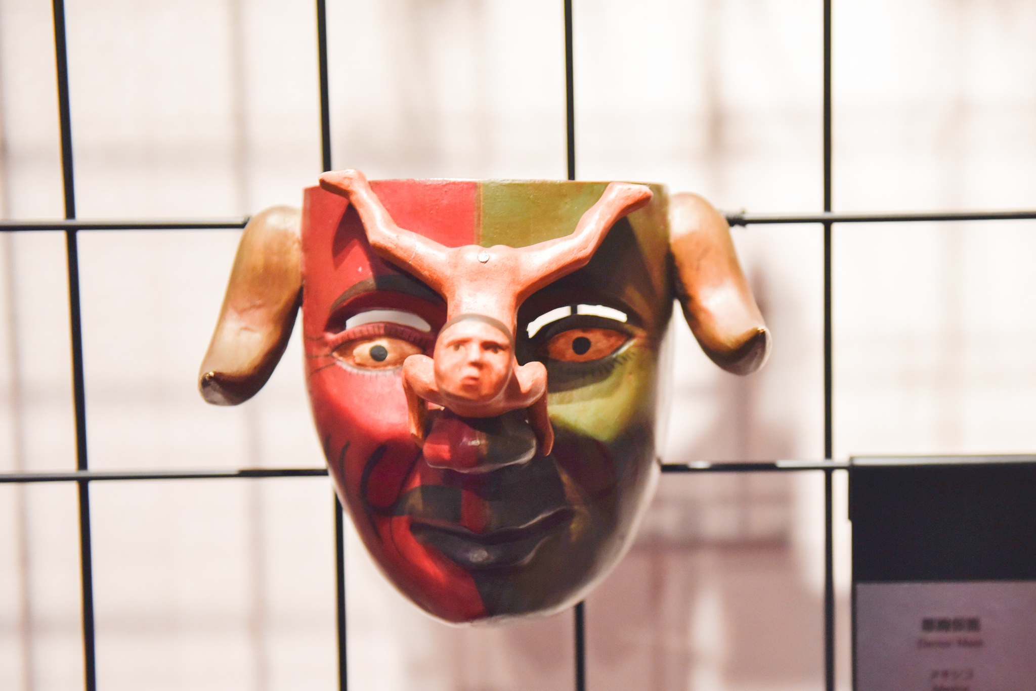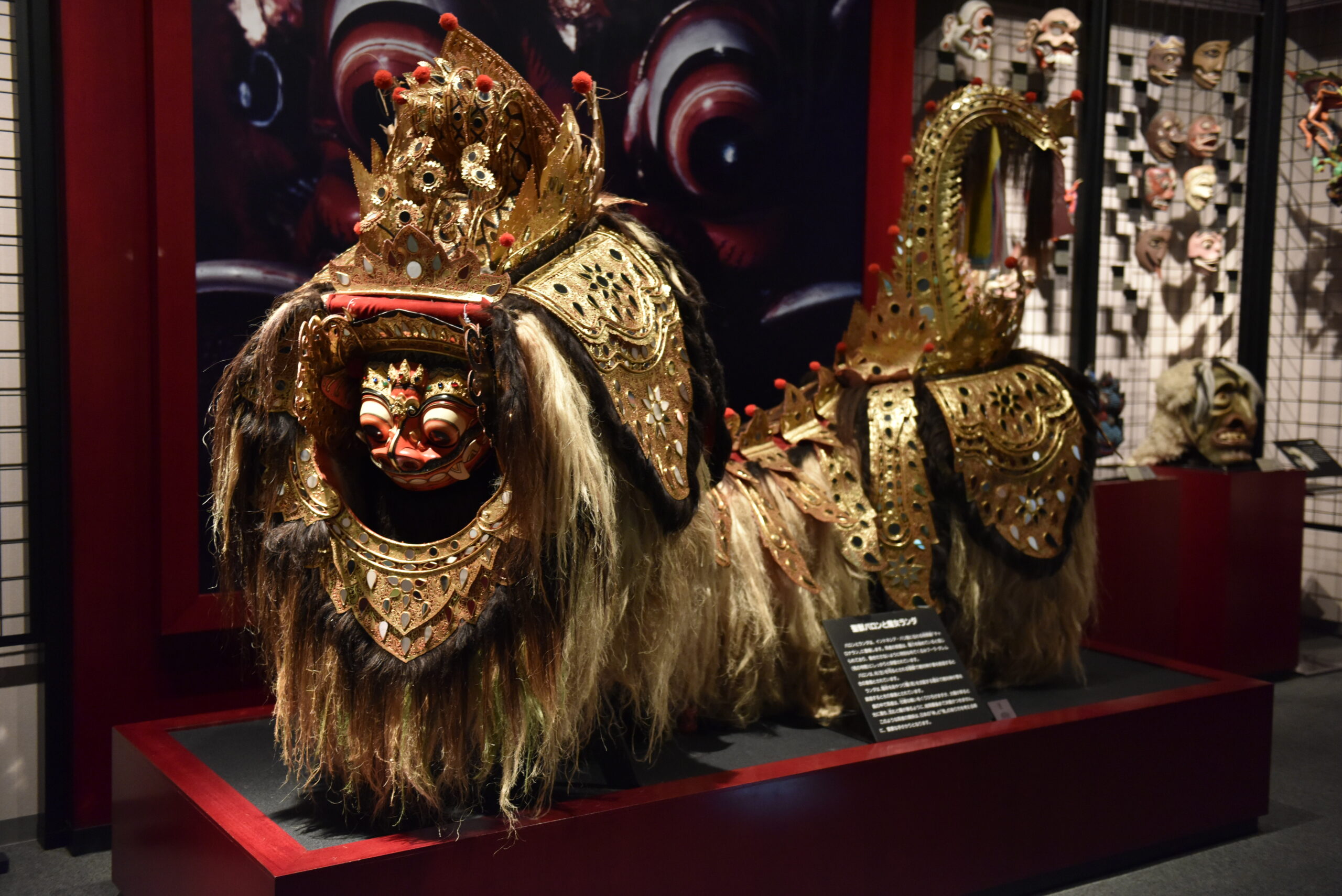 こちらはインドネシアの聖獣バロン。光(生)を司るとされる聖獣だ。一方でこれと戦う魔女ランダは闇(死)を司るようで、両者は昼と夜があるように、戦いに決着がつかないとのこと。これは日本の神や鬼概念を考える大きな手がかりにもなるような、日本と世界との繋がりまでも感じられる展示となっている。