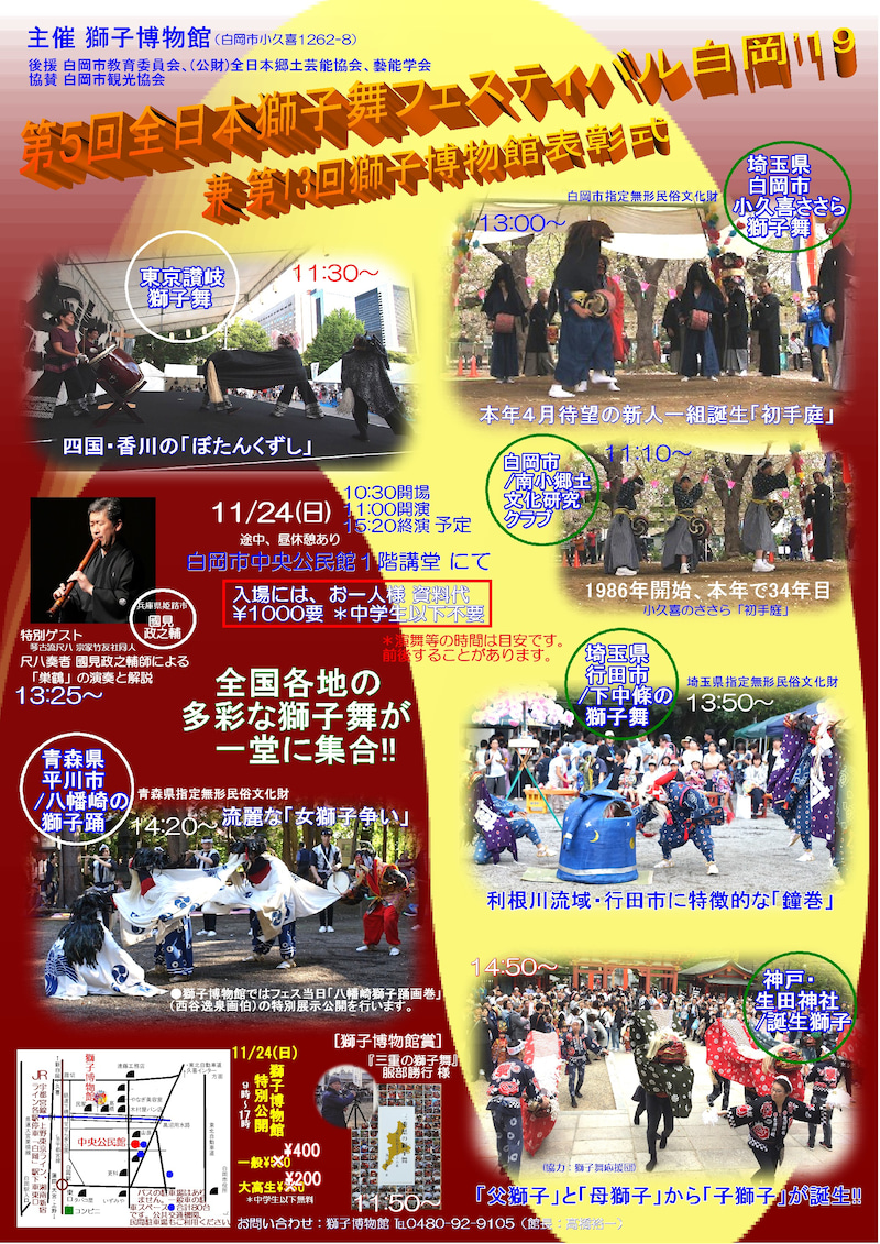 日本中の獅子舞情報が集められ、今年で開館30年となる獅子博物館の高橋館長の熱い想いが詰まった、個人主催!?の獅子舞フェスティバル。