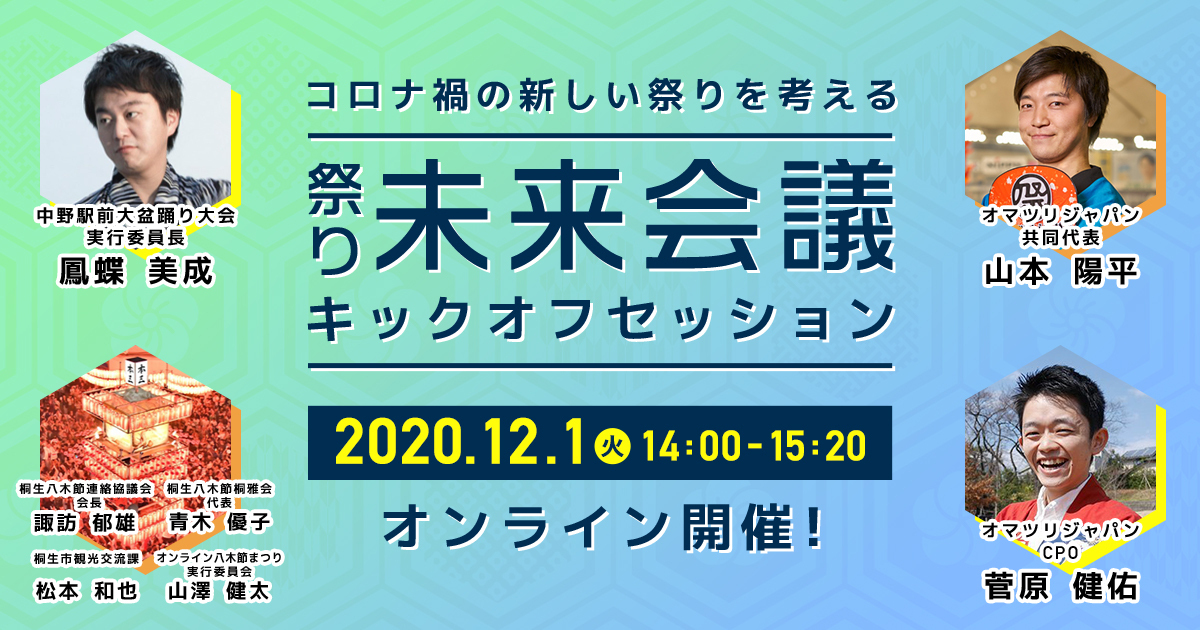 取り組み第一弾として、「Withコロナ/Afterコロナ時代における新しい祭りの在り方を考える」をテーマとした、「祭り未来会議 キックオフセッション」を2020年12月1日に開催いたしました。