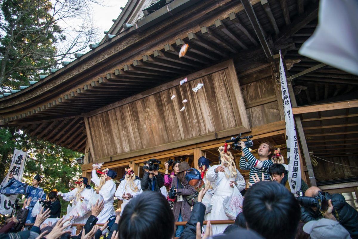 お供え物を手に入れると幸運が訪れるとも言われていて、ふもとから山頂の神社に着くまでに16ヵ所の祠で、神官が奉納したお供え物を奪いあいます。