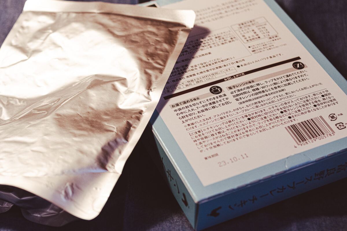 お湯で温める場合は、中袋の封を切らずに熱湯で7〜8分沸騰させます。多くのレトルトカレーが5〜6分の温めですので、少し長めですね。電子レンジの場合は深めの容器に移し、ラップをかけてから加熱(目安は500Wで2分30秒)。詳細はパッケージの裏面をご覧ください。